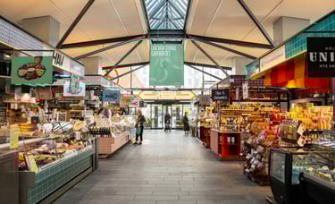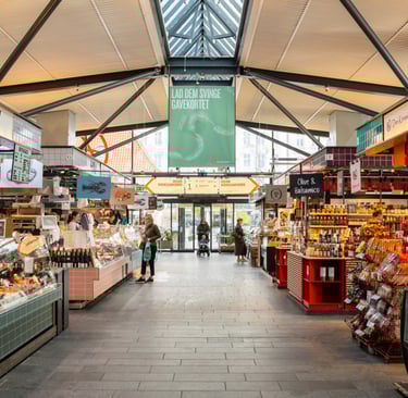 Upon arriving in Malmö, we made our way to the Saluhall, a food lover's paradise housed in a stunning Art Nouveau building. The market's architecture alone was worth the visit, with its high ceilings, intricate detailing, and floods of natural light creating an almost cathedral-like atmosphere for food worship.