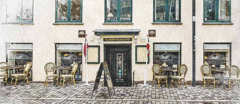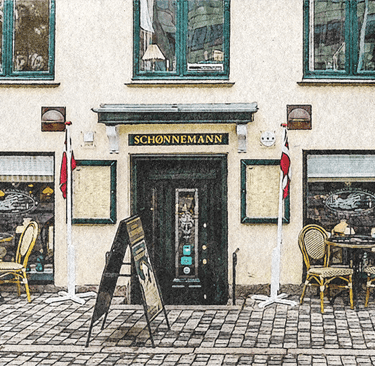 This digital watercolor of Restaurant Schønnemann captures the intimate charm and historical allure of one of Copenhagen’s beloved culinary institutions. The illustration features warm, inviting tones that echo the cozy interior and traditional Danish design elements. Soft, blended brushstrokes evoke the gentle hum of conversation and the clinking of glasses, creating a sense of nostalgia for classic Danish fare. Detailed touches of culinary artistry, such as the careful plating of smørrebrød and the ambient lighting, bring the scene to life. The artwork celebrates the restaurant’s rich history and its commitment to preserving Danish gastronomy. It invites viewers to savor not only the flavors but also the cultural ambiance that makes dining at Schønnemann a cherished experience steeped in tradition and heartfelt hospitality.