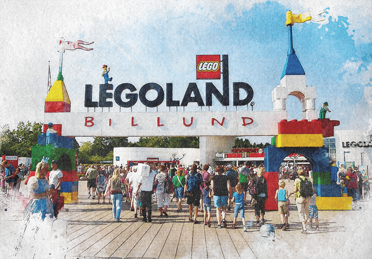The digital watercolor of Legoland Billund is a playful tribute to the world of imagination and creativity that defines this iconic destination. Rendered in vibrant, joyful hues, the artwork captures the intricate details of the miniature landscapes and whimsical structures built entirely from colorful bricks. Fluid brushstrokes bring energy to the scene, inviting viewers to explore a fantasy world where creativity knows no bounds. The piece celebrates the joy of discovery and the spirit of play, reminiscent of childhood wonder and endless possibilities. Each carefully painted detail reflects the innovative spirit of Legoland, turning a visit into an immersive, artistic adventure. This watercolor illustration stands as a reminder of the magic that can be found in both art and the simple delight of exploring a world built on dreams.